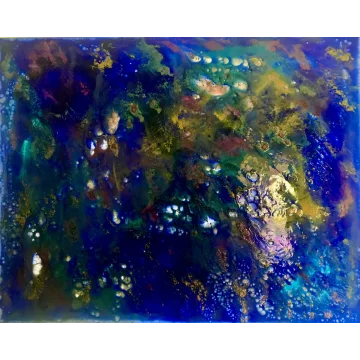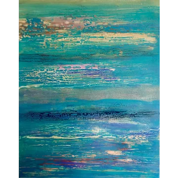 "Abstract Radiance," is a captivating painting that blends metallic pigments and resin to create a stunning visual experience. The artwork features an intricate interplay of colors that shimmer and dance, mimicking the effects of light refracting through transparent surfaces. With layers that seem to float and shift, "Abstract Radiance" invites you to explore its luminous qualities, capturing the essence of light and transparency in a truly unique expression of modern art.