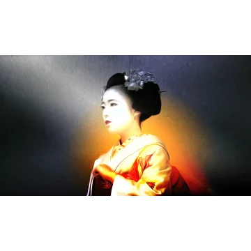 This artwork is part of the Geisha Series, inspired by a traditional Japanese performance I saw in Kyoto in spring 2015. It reflects the mysterious beauty and elegance of the geishas.