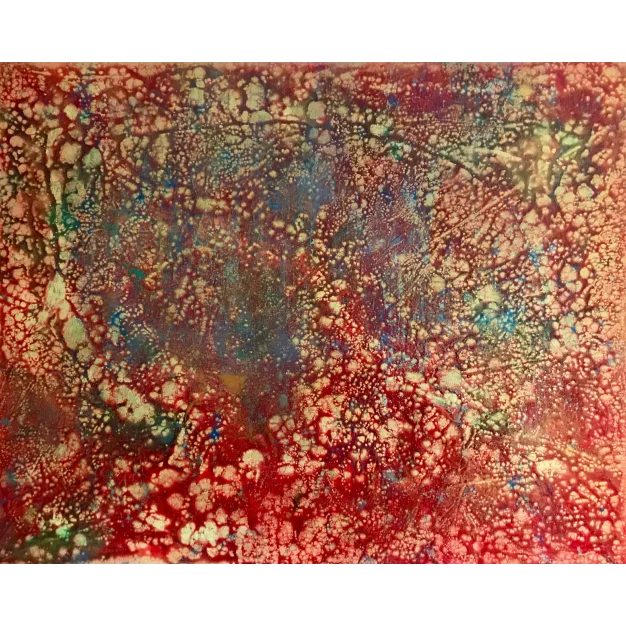 Abstract resin painting using mica pigments and gold acrylic. It symbolizes the reflection of the light and the sky on the red sea.