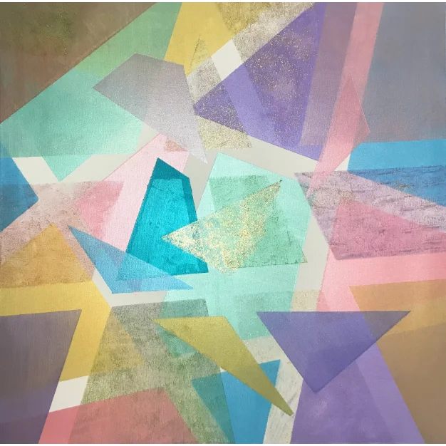 Comme une symphonie de lumière capturée dans une harmonie géométrique, cette œuvre d'art cubiste enchante par son jeu vivant de couleurs. Des couches éthérées de perles acryliques et de paillettes tissent un récit de texture et de brillance, invitant le spectateur à explorer les nuances de la profondeur spatiale et le potentiel transformateur de la luminescence.